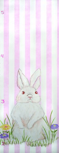 Hippity Hop Hand Painted Growth Chart by Reesa Keep track of your little one?s milestones with this Hippity Hop Hand Painted Growth Chart from Renditions by Reesa! This wooden growth chart features a curious bunny rabbit in front of a pink and white striped background, making it a charming addition to any kid?s room! Your little girl will love keeping track of her much-too-fast growth with this hand painted growth chart. Renditions by Reesa offers unique hand painted canvas art, wall hangings, murals, growth charts and other decorative accessories for kid?s rooms and nurseries. All artwork is designed by Reesa Qualia and is hand painted by a talented group of artists under her expert guidance. Children of all ages can appreciate Reesa?s wide variety of themes, colors and textures that she uses in her art. Each piece is hand painted, making it truly one-of-a-kind. From toddler to