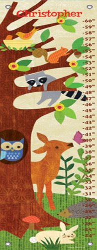 Forest friends of all sizes gather together at their favorite tree on this growth chart.