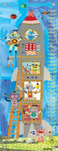 Rocket Robots Growth Chart by Oopsy Daisy The Winborg sisters combine their talents and creativity in detailed, yet amusing artwork. This pair is able to satisfy any creative child with themes ranging from purses and princesses to robots and rockets! Oopsy Daisy allows Megan & Mendy Winborg to share their brilliant artwork with young families across the globe! A great way to track your child?s growth, this Oopsy Daisy kid?s growth chart comes with grommets in each corner and color coordinated decorative covers that easily fit over the screw or nail you choose. Purchase the coordinating ball hooks for a more decorative hanging. The canvas can be wiped clean with a soft, dry or slightly damp cloth and ironed on a low setting with light steam on the backside. When your child?s height has outgrown the growth chart, it can be easily rolled up for storage to make the perfect childhood