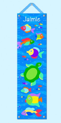 Our Something Fishy personalized growth chart is a real catch! Your little one will love keeping track of their height and seeing their name in a blue sea of colorful fish, turtles and bubbles! This ocean themed growth chart is ready to hang and will instantly make an exciting change in your kids bed or play room.