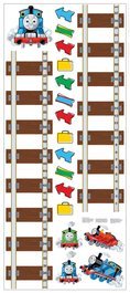 RoomMates Thomas & Friends Peel & Stick Growth ChartAll Aboard with this ultra cute Thomas the Tank Engine and his Friends Peel and Stick Growth Chart! Use the additional decorative elements (suit cases and arrows) as repositionable markers and watch your little Thomas enthusiasts grow! Coordinates with all Thomas & Friends bedding and other room decor available in the marketplace. And don't forget to add our Thomas & Friends self-adhesive border as well as our peel and stick appliques and mural (all sold separately) for a totally Thomas room make-over!Dimensions: 6.25" x ~60"